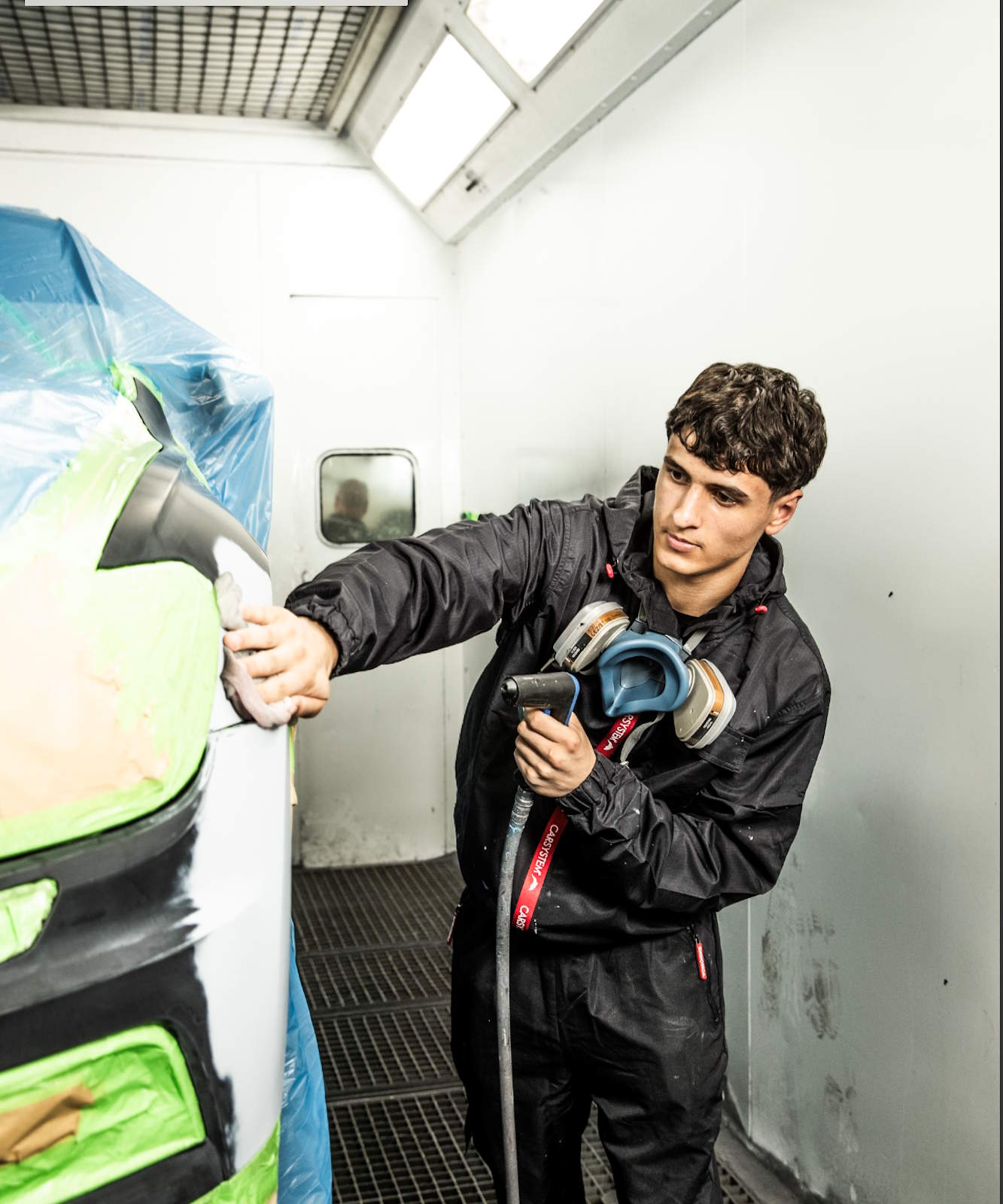 Die Lackiererei verfügt über eine kombinierte Lackier- und Trockenkabine, sowie je eine separate Lackier- und eine Trockenkabine. In die Kabinen passen auch Kleintransporter oder Wohnmobile bis zu einer Höhe von 3m. Bereits seit mehreren Jahren verwenden wir ausschließlich ein umweltverträgliches Lacksystem auf Wasserbasis. Die Reinigung der Abluft aus den Lackierkabinen erfolgt durch aufwändige Filteranlagen.